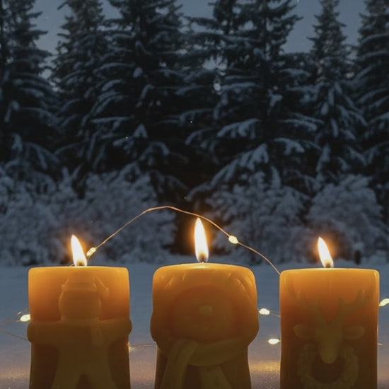 Christmas Beeswax Pillar Candles Santa Snowman Reindeer Gingerbread Holiday Gifts