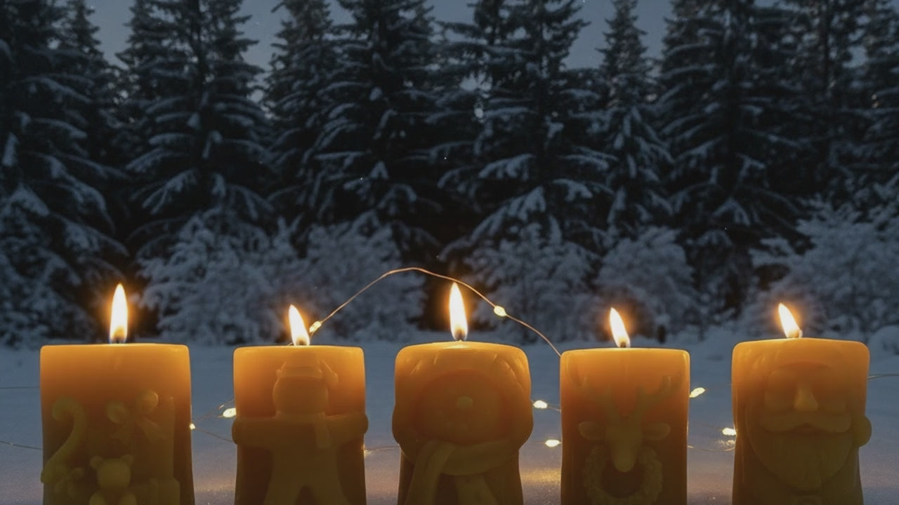 🎄 Christmas Beeswax Pillar Candle Set — Santa, Snowman, Reindeer, Gingerbread & More 🎁